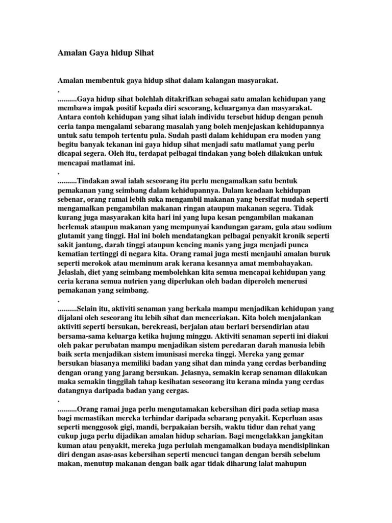 Contoh Karangan Gaya Hidup Sihat Tingkatan 1